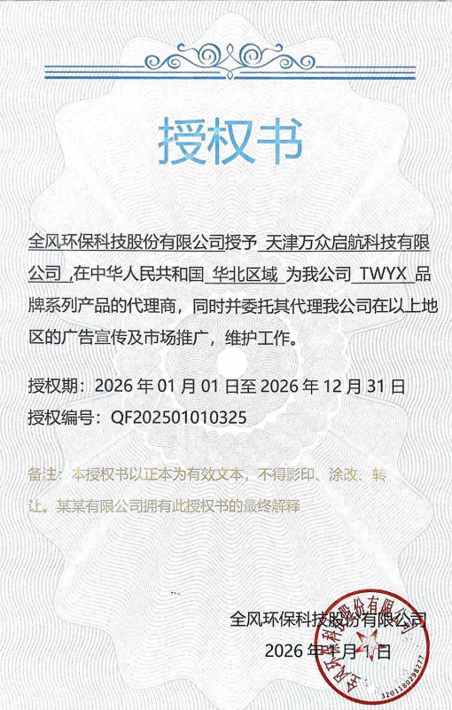 全风风机授权书