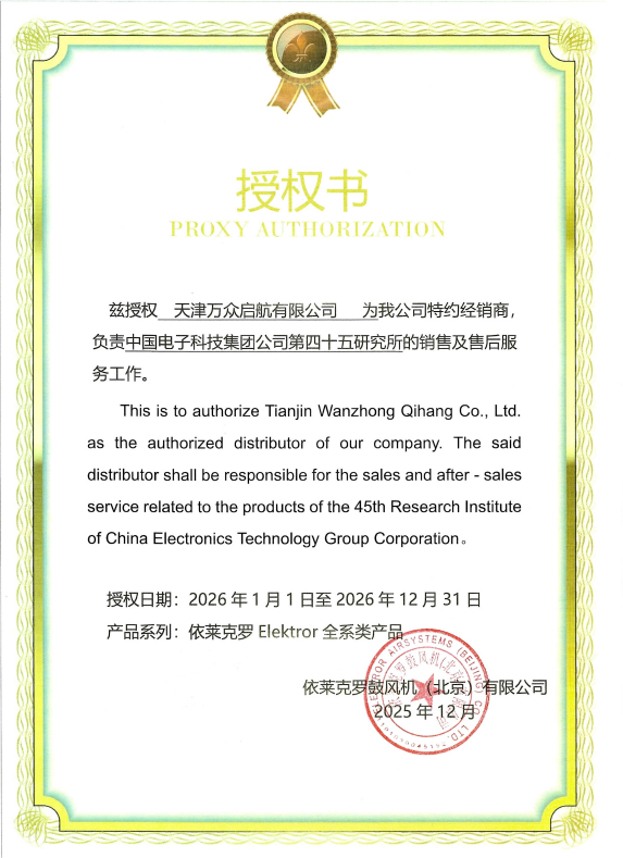 依莱克罗风机授权书